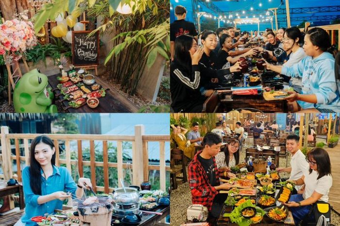 Chí Phèo BBQ Restaurant is the ideal place for dates, weekend gatherings with friends and family, or special events. An additional highlight is the weekly Acoustic Night, every Thursday from 7-9 PM, which provides a relaxed and emotional atmosphere. The restaurant also features a covered dome for rainy days and offers free birthday party setups with no guest limit, making it a perfect venue for memorable celebrations in a cozy and unique setting.