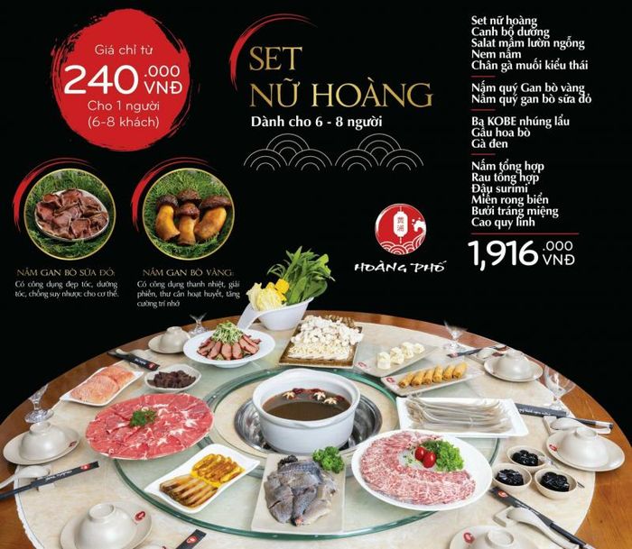Hoang Pho Mushroom Hotpot Restaurant offers a wide variety of fresh and rare mushrooms in a setting that exudes traditional Chinese charm. With an extensive menu and reasonable pricing, Hoang Pho specializes in hosting various events such as weddings, business conferences, gatherings, and birthdays, with different options like set menus, per-person pricing, and buffet services, along with plenty of special offers and gifts for customers.