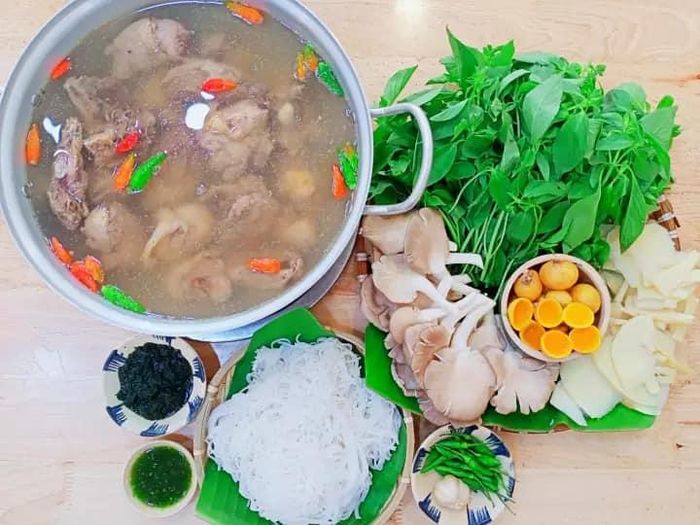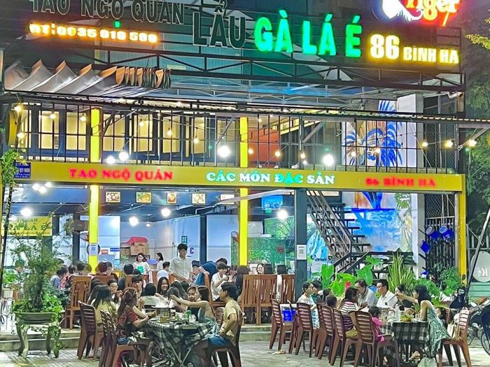 Despite growing popularity and business expansion, Tao Ngộ Restaurant maintains its humble beginnings with neatly arranged tables both inside and in the courtyard, offering a comfortable and friendly dining experience. As the restaurant's signature dish, the lemongrass chicken hotpot includes chopped chicken, oyster mushrooms, diced bamboo shoots, a plate of noodles, and, notably, a plate of lemongrass leaves, blending together for a unique and unforgettable flavor.