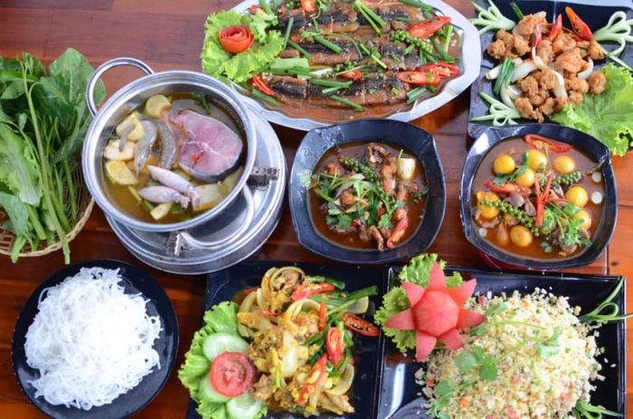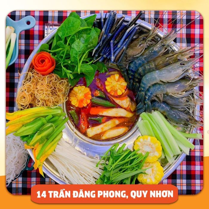 For an authentic beef hotpot experience in Quy Nhon, Nam Hien Restaurant is the go-to destination. Their beef hotpot combo includes a pot of broth, beef, mushrooms, vegetables, and noodles, all prepared with a unique recipe that brings out a sweet and savory depth of flavor. The beef is local, thinly sliced, tender, and naturally flavored. Seafood lovers can enhance their hotpot with additional seafood plates. Beyond hotpots, the restaurant offers exquisite BBQ sets and various family dishes.