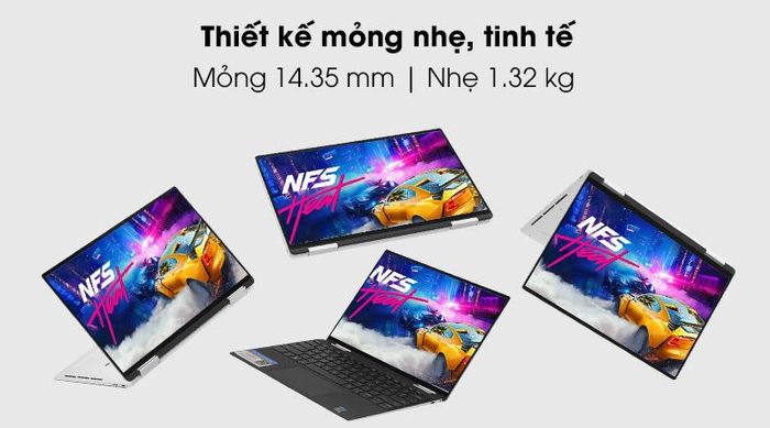 Elegance, sophistication, and power are encapsulated in the value that the Lenovo Yoga 9 14ITL5 business laptop brings to you. If you're seeking a thin, light, and flexible laptop with impressive specifications to support heavy tasks, experience this premium edition from Lenovo. The Lenovo Yoga 9 14ITL5 is designed with an impressive appearance, measuring just 15.7 mm thin and weighing 1.37 kg, akin to a mobile notebook that's easy to carry in your daily bag. The glossy metal shell with modern colors exudes full elegance and luxury, matching the aesthetics of a business laptop, stylishly sophisticated. The Lenovo laptop features soft-edged bezels and a flexible hinge that allows for 360-degree rotation, enabling comfortable laptop usage in all positions.
