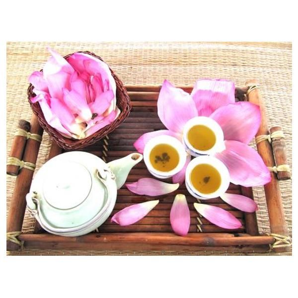 - 100% Dalat Farm Lotus Tea is hand-picked, selecting fresh 1 bud 3 leaves tea buds. The tea is roasted multiple times to help the tea leaves fully absorb the lotus fragrance, creating a refreshing and relaxing feeling.