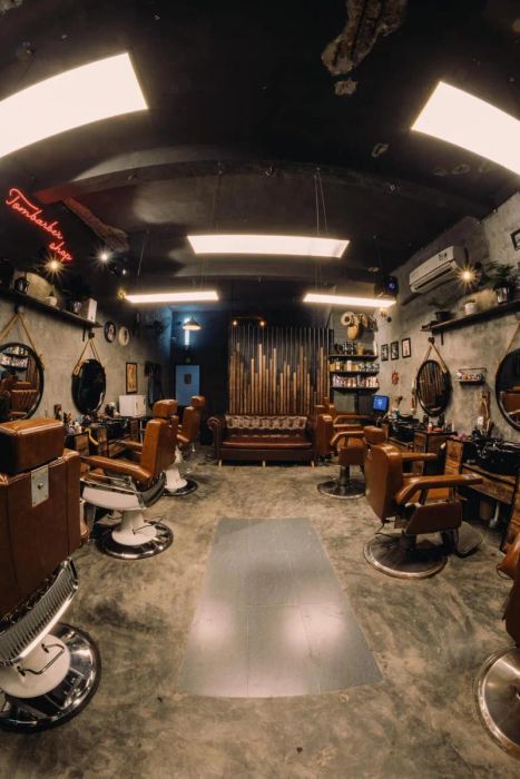 Step into Tùng Barber Huế, and you'll be immersed in an incredibly unique and stylish atmosphere. From the haircut area to the waiting lounge, the familiar sounds of hairdryers and scissors create a comforting vibe. However, the interior design is what truly sets this place apart—its distinct decor will leave first-time visitors awestruck.