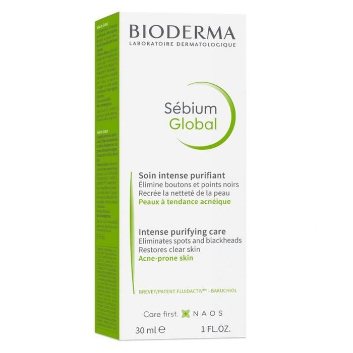 Bioderma Sebium Global is formulated with the innovative Fluidactiv® complex, enriched with bakuchiol, to regulate the quality and quantity of fatty acids in the skin. This stabilizes oil production, and when hydration is balanced, inflammatory acne is reduced. Sebium Global targets acne, blackheads, and blemishes, helping to restore skin's balance and reduce breakouts.