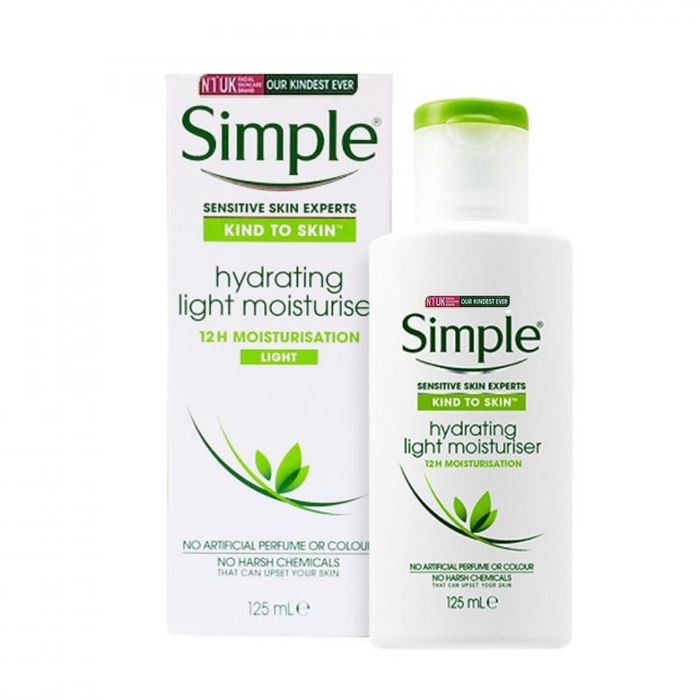 Experience the double moisture boost with Simple Kind To Skin Hydrating Light Moisturiser for smooth and revitalized skin.