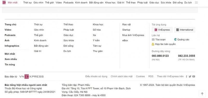 VnExpress is one of the most widely read Vietnamese newspapers. Managed by the Ministry of Science and Technology, it operates under license number 548/GP-BTTTT granted by the Ministry of Information and Communications on August 24, 2021. VnExpress provides comprehensive daily news across various sectors such as current affairs, business, entertainment, science, education, law, health, and more, updated with the latest and most trending content. In addition to news, readers can share personal stories or concerns in the 'Tâm sự' (Confessions) or 'Ý kiến' (Opinions) sections, where they can receive feedback, advice, or support from fellow readers.