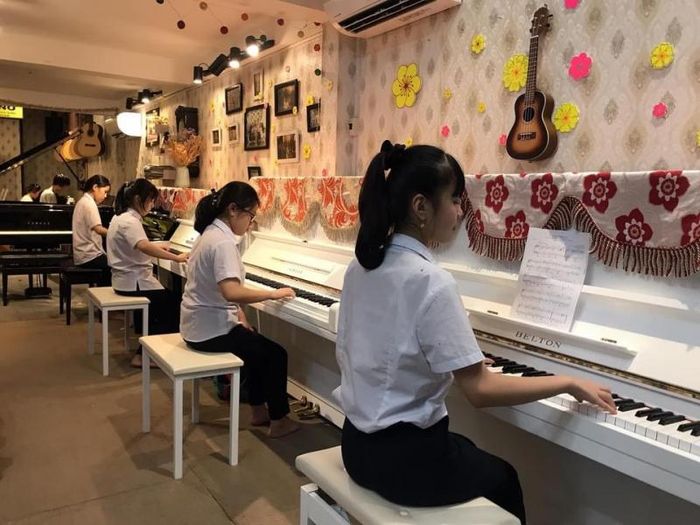 Thanks to the dedicated and responsible teaching of instructors, students rapidly improve, gaining confidence and skillfully performing the piano pieces they learn. The teachers are graduates of the Hue Academy of Music, with many years of experience in teaching and training young students to become proficient piano players.