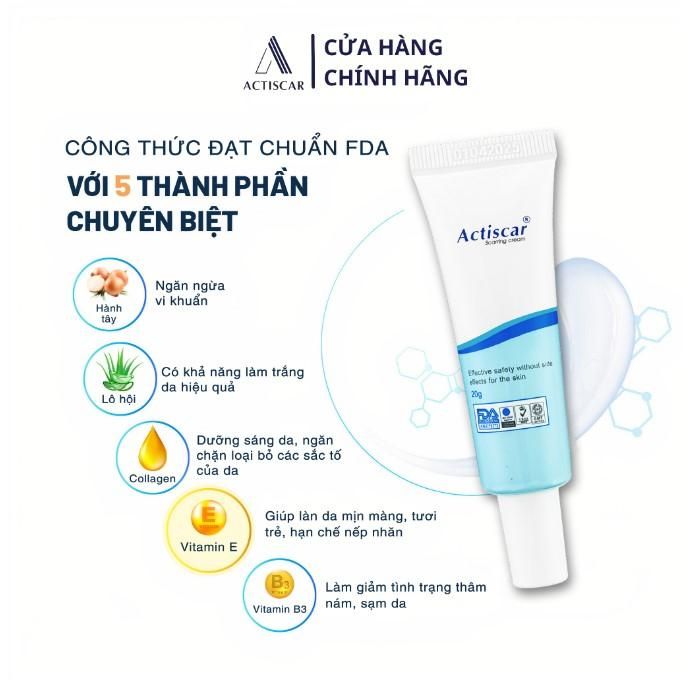 Actiscar Scar Fading Cream, formulated with scientifically researched ingredients and the latest technological innovations, meets the beauty needs of Vietnamese women. Suitable for those dealing with raised scars, pitted scars, depressed scars, hypertrophic scars, postoperative scars, dark scars...
