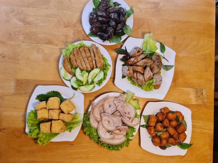 Many patrons have become fans of the flavors at Ha Thanh Eatery, especially after their first visit. A typical special platter includes fresh herbs, cucumber, crispy fried tofu, grilled pork sausage, spring rolls, meatloaf, and boiled pork. However, feel free to customize your platter by adding or removing toppings to suit your taste.