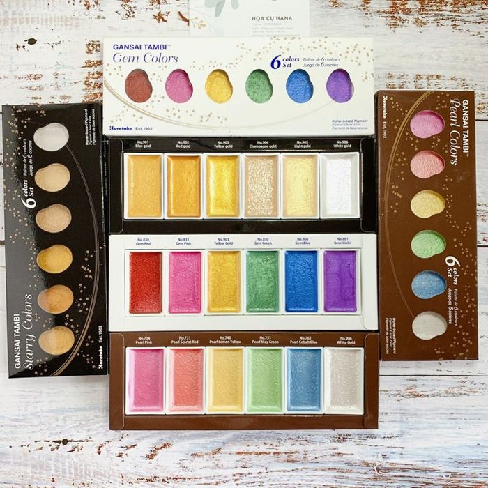 Buy Now: shopee.vn/Gansai-Tampi-Watercolor-6-colors-Kuretake-Starry-Pearl-Gem-colors-i.14655974.272332407