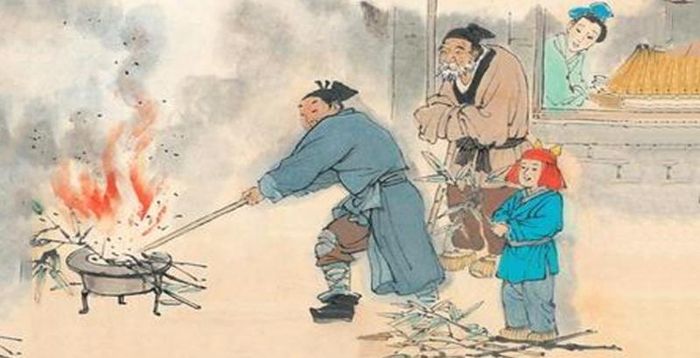 Just then, the new husband returned with a wild boar and asked his wife to prepare a feast for the neighbors. He set fire to the pile of hay to roast the boar. Unfortunately, the fire spread, burning the straw and also causing the old husband to be burned to death. When the wife returned and saw the tragedy, she was heartbroken, feeling as though she had killed her former husband. Overcome with grief, she jumped into the fire and died beside him. The new husband, deeply moved by his wife's sacrifice, also threw himself into the fire, and all three perished together. This tragic event took place on the 23rd day of the 12th lunar month.