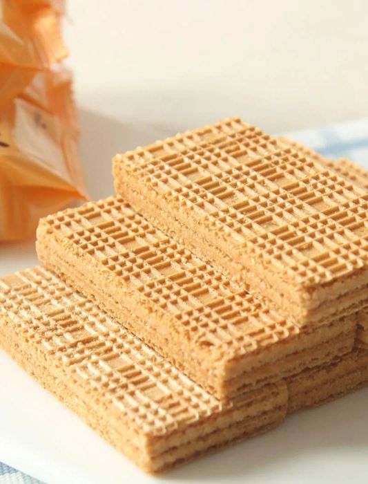The primary ingredients of the waffle are milk and soybeans, which combine to create a distinct and delicate flavor. The wafers are usually a pale white or cream color, with decorative patterns such as flowers, leaves, and animals embossed on top. This unique snack is enjoyed for its smooth texture and light, satisfying taste.