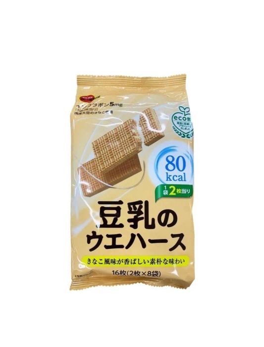 Bourbon Soy Milk Waffle is a sweet, soft wafer originating from Japan. Bourbon is a well-known Japanese confectionery brand, recognized globally for its high-quality snacks. The Bourbon Soy Milk Waffle is light and tender, typically shaped in round or heart forms.