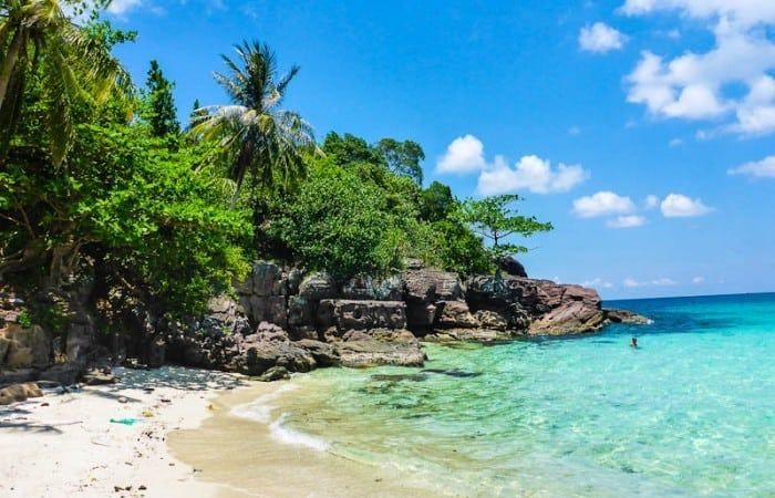 The beach here is absolutely stunning, almost like stepping into paradise. The sand is white and soft, while the ocean boasts a turquoise hue, reflecting the drifting clouds and sunlight. Though small, Hon Xuong is one of Phu Quoc’s most beautiful and lesser-known beaches. From the shore, you can admire the nearby Hon Gam Gi and Hon Vong islands, especially when there are no tourist boats in sight.