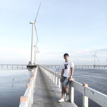 Heading from Bạc Liêu city towards the sea along Cao Văn Lầu road, at Biển Đông A hamlet, Vĩnh Trạch Đông commune lies the newly completed wind power plant earlier this year. It's about 20km from the city center, yet even from miles away, you can see the turbines spinning rhythmically like giant pinwheels against the sky. This is a favorite photo spot for many young visitors to Bạc Liêu.