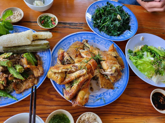 When it comes to Da Lat's grilled chicken with bamboo rice, you can't miss Khuong Duy Restaurant. The owner is of an ethnic minority, so the dishes have a unique flavor, but they're still very palatable. The restaurant's menu is quite basic, consisting of main dishes like wild meat (pork, deer, porcupine, etc.), stir-fried vegetables, boiled dishes, and especially grilled chicken with bamboo rice, which is the restaurant's specialty.