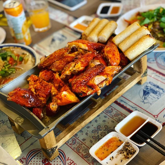 The restaurant offers a cool and fairly simple space. The owner is friendly and conversational. Prices are reasonable, and they also serve alcohol. If you visit on weekends, it's advisable to call ahead as the grilled chicken may take a bit long. The restaurant is located on a main road leading to Golden Valley, Pink Grass Hill, Cu Lan village, so it's convenient to stop by and enjoy!