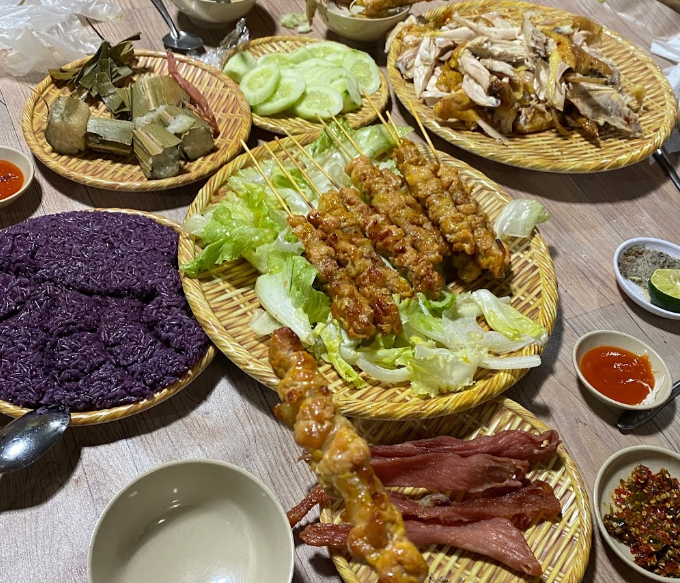 The local dishes are cooked by local people, so they have a very distinctive taste, but they are very delicious and enjoyable. When you come to the restaurant, you don't need to order dishes because the restaurant will serve all the dishes. The bamboo rice is fragrant and sticky, the grilled chicken and grilled meat are delicious and flavorful, and the grilled banana is sweet and chewy. In addition, there are gong performances and bonfires.
