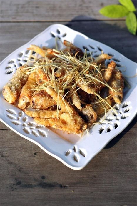- Lấy khoảng 5 củ sả cắt làm đôi dùng dao phay đập dập, dùng tay tước nhỏ sả. Ớt bỏ hạt, thái nhỏ. Tiếp theo, cho 2 thìa bột chiên gà giòn vào sả và ớt rồi trộn đều.