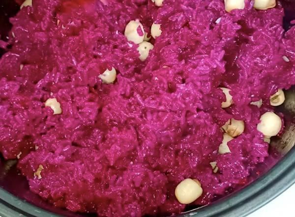Cook the Sticky Rice with Lotus Seed and Purple Leaves