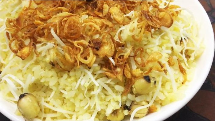 - Step 2: Steam the Sticky Rice: After soaking the rice, drain the water and transfer the rice to a bowl. Add the lotus seeds to the rice bowl, add 2 teaspoons of coconut milk, ¼ teaspoon of salt, and mix well. Prepare a pot of boiling water for steaming the rice, add the remaining 3 pandan leaves to the water. Note to put the rice in a steamer and create holes to make the rice more elastic and delicious. Steam the rice for about 20-30 minutes until fully cooked. Finally, remove the rice and add 2 tablespoons of sugar, mix well to complete.