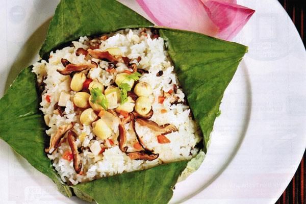 - Step 1: Prepare the Ingredients: Rinse the glutinous rice and soak it with the strained pandan leaf juice, soak for about 6 hours or overnight until the rice expands. Soak the dried lotus seeds in water for about 3 hours until they soften, then rinse thoroughly. Bring a pot of water to a boil, add the lotus seeds and cook for about 15 minutes until soft, then remove. Mix the rice and lotus seeds together, then add 1 teaspoon of salt and mix well.
