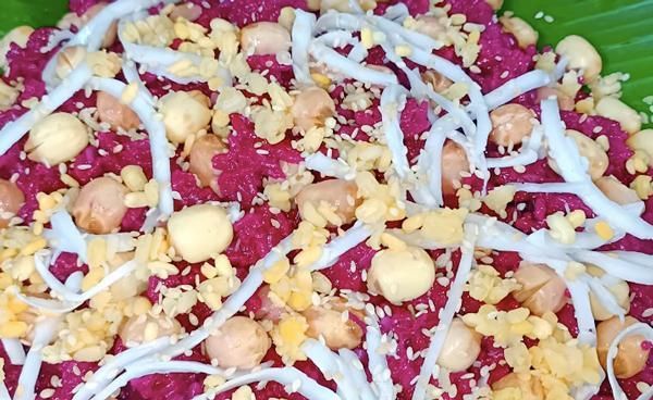 - Finished Product: The sticky rice is soft, chewy, and fragrant. When eaten, you'll taste the chewiness of the lotus seeds along with a hint of sweetness from the grated coconut. It creates an extremely satisfying sensation when consumed.