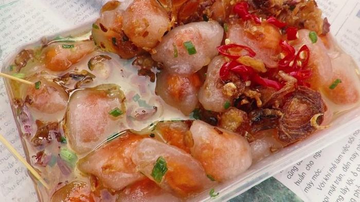 Every time you set foot in this land, along the main roads, and even deep into every alley, you can easily find stalls selling this specialty gift. Although not exclusive to Phan Thiet, you can encounter this cake in Saigon or Hoi An. However, the version in Phan Thiet is loved for its distinctive characteristics. In terms of appearance and structure, the cake is similar to transparent dumplings but with some differences. The cakes, white with a hint of red, slightly sticky, are stacked on top of each other in a beautiful manner. The perfect combination of the chewy texture of the cake's outer layer with the filling of delicious, rich shrimp meat makes it irresistibly tasty.