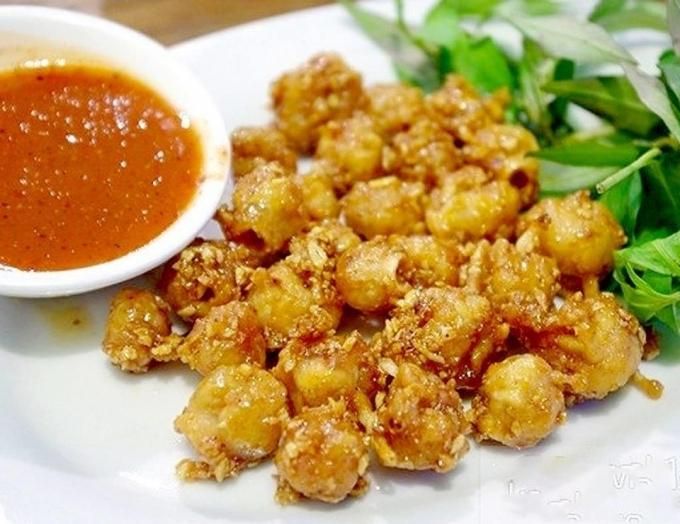 Grilled squid teeth are most popular when eaten with spicy satay sauce. The fiery red satay sauce, made at the stall, is poured over the skewers of squid teeth, creating an irresistibly tempting sight. A slightly more complex dish in preparation is stir-fried squid teeth with butter and garlic. This dish is often enjoyed with crispy rice paper and the rich flavor of dipping sauce, creating a novel taste. Grilled squid teeth have a strong aroma of squid, a chewy and crispy texture that is utterly enchanting. From a distance, you can easily sense the fragrance from these small grilled squid stalls. This dish is often served with cucumber and pickles to balance the flavors. Besides grilled squid teeth, in Binh Thuan, you can explore a myriad of other dishes made from squid teeth, such as squid teeth sausage, salt-grilled squid teeth, and spicy grilled squid teeth... Rest assured, each dish is super enticing, and with a bit of beer, it becomes even more delicious many times over.