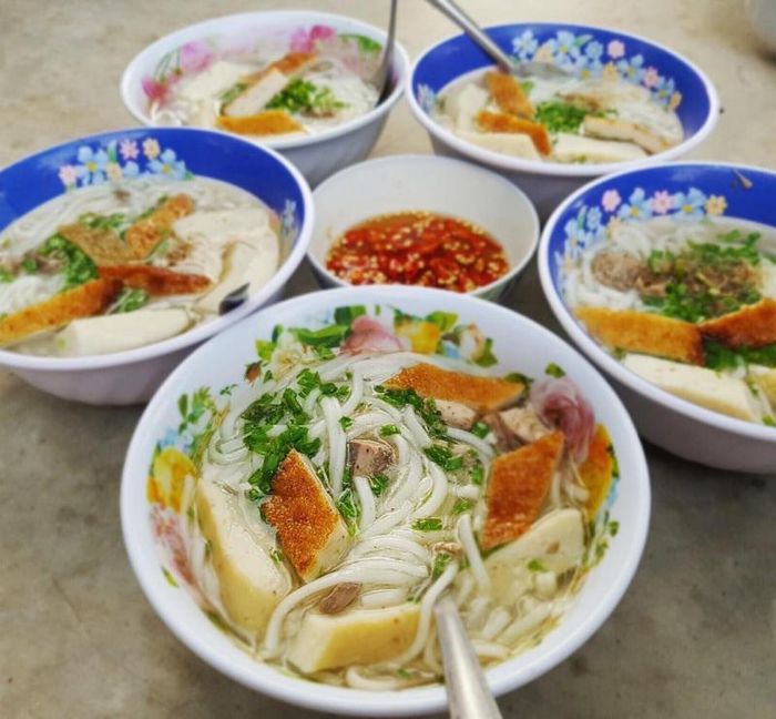 Binh Thuan's renowned fresh seafood gives life to delightful dishes, especially the Banh Canh Cha Ca. Crispy golden-fried fish patties complement the sweet and tender steamed fish patties, all mingling with white silky noodles in a broth that's both sweet and savory. This dish encapsulates the culinary essence of Binh Thuan. Banh Canh Cha Ca, a rustic local specialty, is a must-try for travelers visiting Phan Thiet. Freshly caught fish from the local seas is the key attraction. Cooks use the fish meat for the patties, fish bones for the broth, and fish sauce for seasoning. Commonly used fish varieties include barracuda, snapper, grunt, mackerel, and catfish.