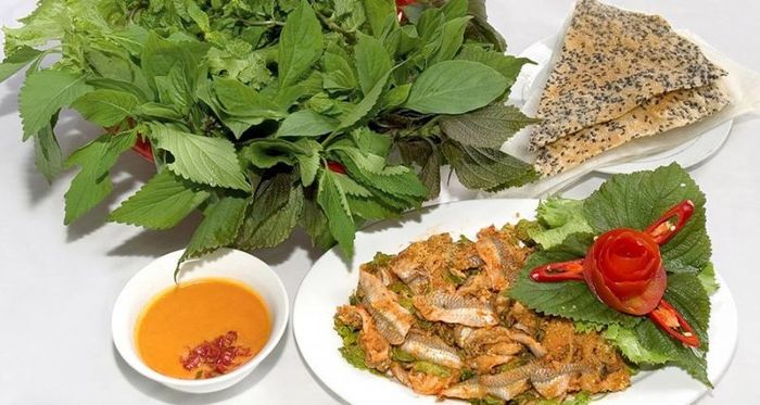 According to the locals' experience, when selecting fish, it is advisable to choose small ones, about the size of two fingers. After removing the fish bones, rinse with mineral water or fresh coconut water for added flavor. Next, blanch the fish in lime juice until it turns white, then marinate it in a sweet and sour tamarind sauce mixed with crushed garlic and chili. Let it sit for about 5 minutes to allow the spices to penetrate each piece of fish meat, then arrange it on a plate, lined with fresh banana leaves, surrounded by starfruit, sour bananas, and a few slices of red chili to enhance the appeal of the dish. The third fish salad is made from ribbon fish. The fish is cut lengthwise about 5 cm, and when eating, it should be dipped in lime juice with crushed garlic and chili to semi-cook the fish. When eating, roll the fish with various greens such as lettuce, coriander, starfruit, sour banana... and dip it in a bowl of peanut sauce. You won't be able to resist the pleasure of the delicious fish, the aroma of the herbs, and the spicy kick of garlic and chili in the fish roll.