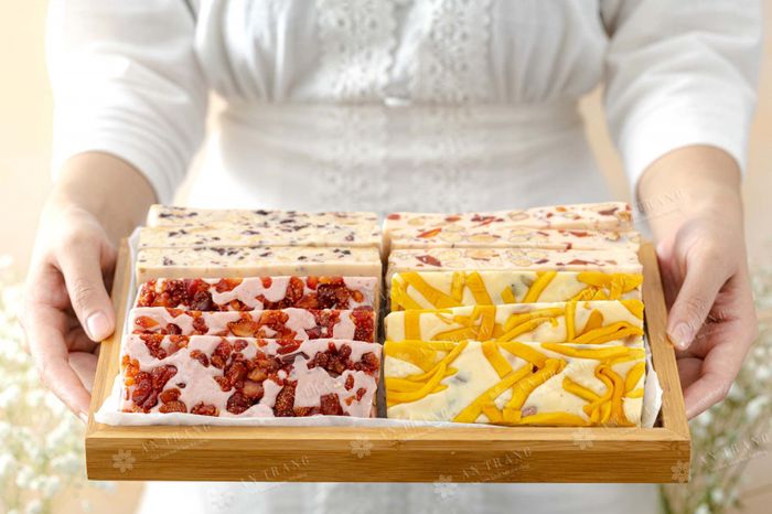 Nougat candies - A masterpiece of Crunchy Delights - Cakes, Nutritious Seeds house is also loved because they are packaged in extremely cute packaging. The fragrance is natural. It is a delicate combination of rich fresh milk, nutritious sour fruits, and creamy nuts. Because Crunchy Delights' Nougat candies have a gentle sweetness, soft chewiness, they will definitely not be hard or cloying to use.