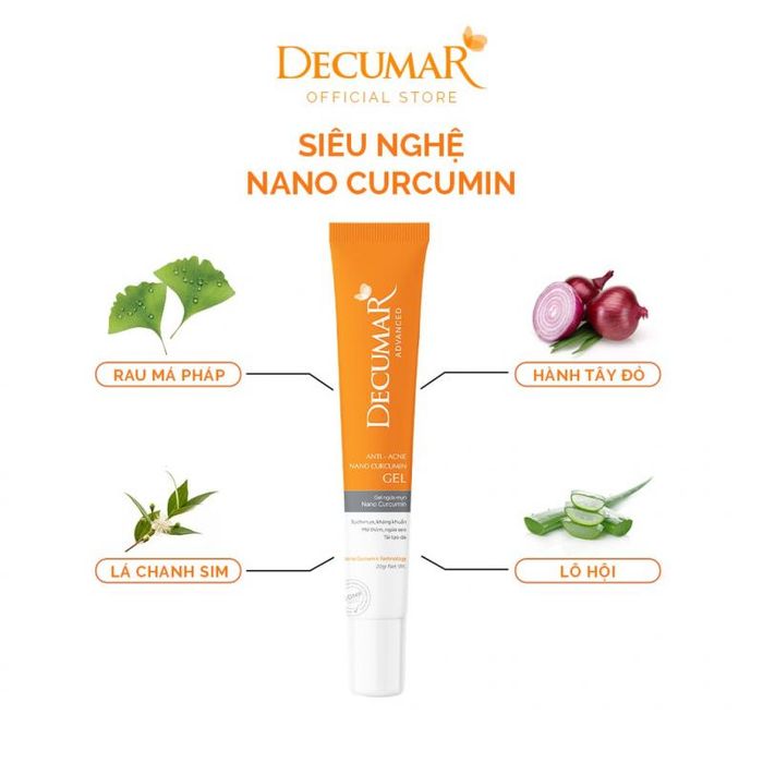 Decumar Advanced Acne Prevention Gel is an improved version of Decumar New 20gr with enhanced formula, perfection, and increased nano turmeric in the product's ingredients. The product contains Nano Curcumin combined with French pennywort extract for the first time in Vietnam, bringing outstanding results in reducing redness, eliminating acne, stimulating skin regeneration, fading dark spots, and preventing scars quickly.