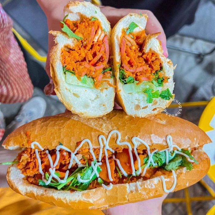 In Hanoi, Bánh Mì Dân Tổ is a beloved late-night snack, known to those who work late or enjoy night outings. The name "Dân Tổ" comes from its original purpose—to serve the night owls and early risers, especially the working folks who are often up at odd hours. This bánh mì stand has become famous for its unique filling, which sets it apart from all other bánh mì in the city.