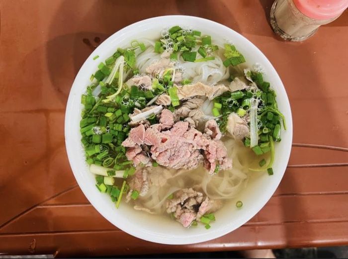 The menu is simple yet offers a range of traditional pho options, including rare beef, well-done beef, and brisket pho, all served in hearty, steaming bowls. The taste is rich and savory, making it a favorite among pho lovers and seasoned foodies. Despite its long history and fame, the restaurant hasn't changed much in terms of its humble, no-frills atmosphere. The restaurant occupies the first floor of a building at 3 Trần Phú, with both indoor and outdoor seating. The green plastic chairs have become a signature feature of the place, simple yet always neatly arranged in rows.