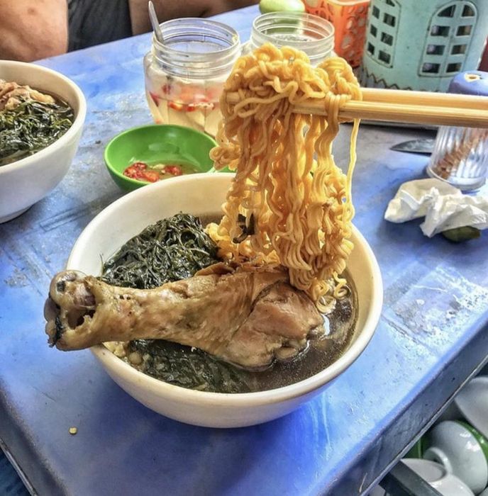 Mỳ Gà Tần at 24 Hàng Bồ has been a street-side staple in Hanoi for nearly 30 years. The shop has been serving customers along this street for three decades, with the owner only operating in the late afternoon and evening, as the shop is closed in the morning. Despite its long history, the recipe here has a distinct twist that sets it apart from other similar eateries. This street food shop remains deeply rooted in the essence of Hanoi's culinary culture. When you think of Mỳ Gà Tần, the strong, herbal aroma often comes to mind. The broth is infused with traditional medicinal herbs, which can be an acquired taste for those unfamiliar with the flavor. However, for regulars, the taste is unforgettable. Aside from its unique flavor, this dish is known for its health benefits. Studies show that the herbal chicken broth helps alleviate back pain, lung issues, and internal heat, making it a nourishing and soothing meal.