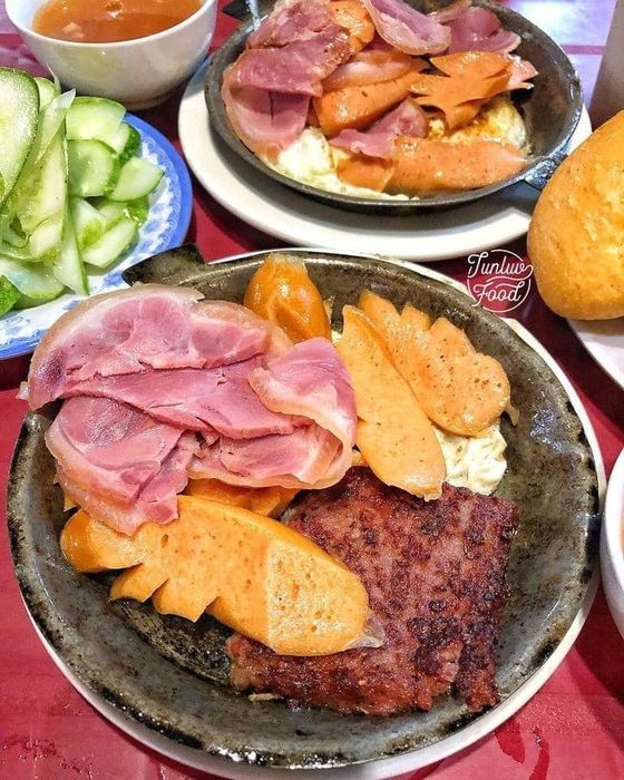 Bánh Mì Chảo Hiệu Lực is famous for its generous portions and great taste. Each sizzling pan includes an array of sausages, ham, pâté, and eggs served alongside fresh bánh mì. The pâté is smooth, flavorful, and perfectly fried without falling apart. The large slices of ham and pickled cucumbers add a delightful crunch, and you’re welcome to enjoy them as much as you like. What sets this place apart is its traditional style—there’s no sauce served with the dish, so you’re free to add soy sauce or chili sauce to taste. The restaurant offers a spacious and comfortable atmosphere, with seating both indoors and outside on the sidewalk.