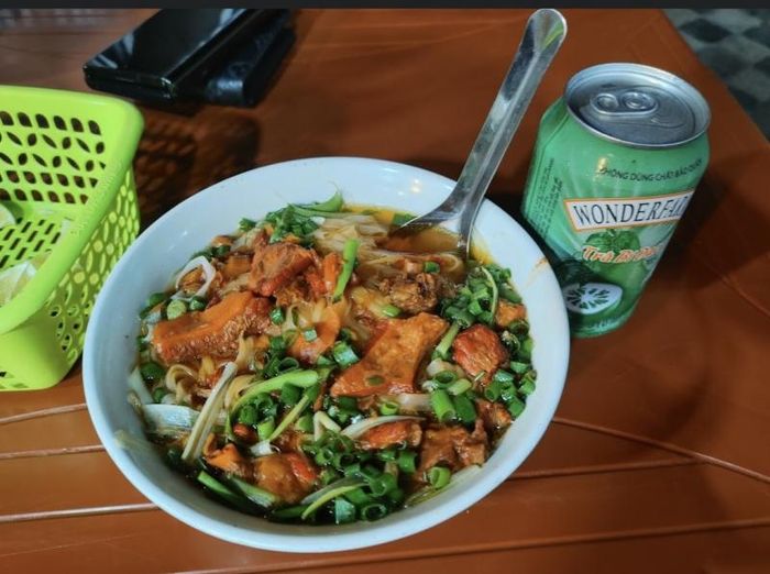 The bánh đúc here is delightfully chewy, submerged in a clear and savory broth that packs a punch. The filling consists of stir-fried minced pork with wood ear mushrooms, finely chopped coriander, aromatic fried onions, and a few golden cubes of fried tofu. When served, the steaming bowl creates a mouth-watering display, tempting anyone who sees it. The restaurant has well-maintained seating, allowing customers to relax and enjoy their meal at their own pace.