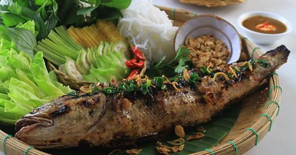 Regional variations include the accompanying vegetables. While mudfish in Dong Thap is often enjoyed with rolled lotus leaves, Cà Mau's specialty is served with a variety of greens such as lettuce, cucumber, aromatic herbs, sour star fruits, and green bananas. Despite its humble origins, roasted mudfish has become a must-try delicacy in Southern restaurants. So, if you ever visit the Mekong Delta or Cà Mau, don't forget to relish this renowned grilled dish.