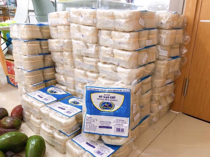 Chũ Noodles are thinly spread like rice paper, air-dried, then moistened slightly to achieve a sour taste. They are cut into strands like pho noodles, air-dried again, and bundled into small packs. The meticulous production process imparts a distinctively fragrant and chewy quality to Chũ Noodles. Best enjoyed in hotpot dishes.