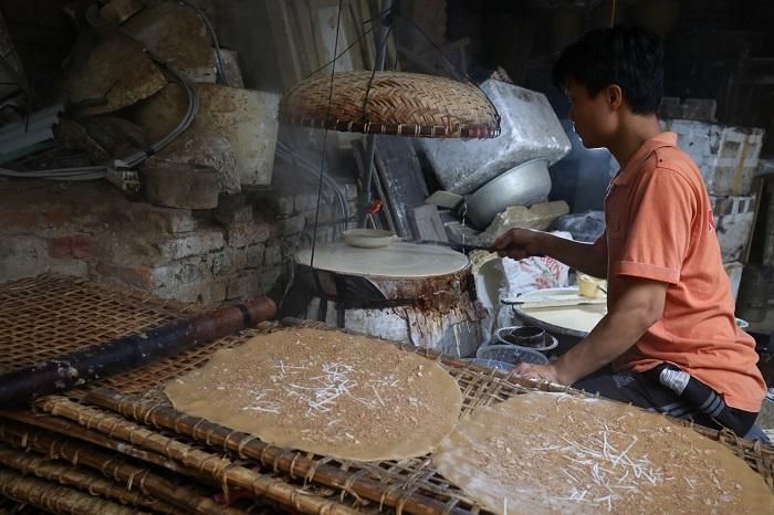 Locals here only make this cake during Tet (Lunar New Year) to welcome guests and offer as gifts to relatives, symbolizing the protective and nurturing nature, thin but never letting the honey spill out.