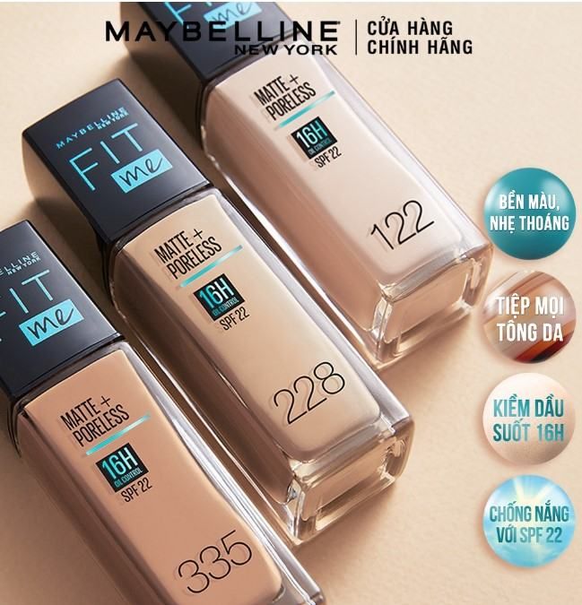 Fit Me Maybelline New York Matte Poreless Foundation is renowned worldwide as the 'national foundation' and has made a significant impact in the beauty industry. This foundation impresses with its oil-control ability, providing a smooth matte finish while effectively covering imperfections and pores. It's an ideal foundation for normal, combination, and oily skin types.