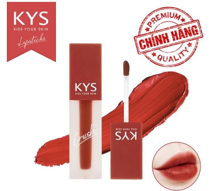 KYS Crush Chocolate Brick Red Lip Cream - No Lead is the first lip product on the market made with refined dark chocolate to eliminate lead residue on lips. It stands out as one of the safest lipsticks in Vietnam, certified by Quacert and Quatest 1, agencies under the Ministry of Science and Technology, ensuring its safety for all users.