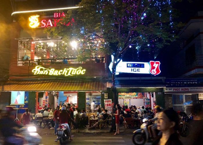 When dining here, you can fully savor the fresh, sweet taste of the octopus, with the marinade adding an extra layer of flavor. The atmosphere at Vũng Tàu Quán is incredibly refreshing, located on the sidewalk with a wide-open space. The owners are friendly and often surprise customers with complimentary fruits and snacks. It’s no wonder that the octopus and other grilled dishes here are consistently good – crispy, perfectly colored, and never overcooked or burnt. The stir-fried snails with tamarind and fried noodles are also worth trying, with a distinct and satisfying flavor that you won’t find elsewhere.
