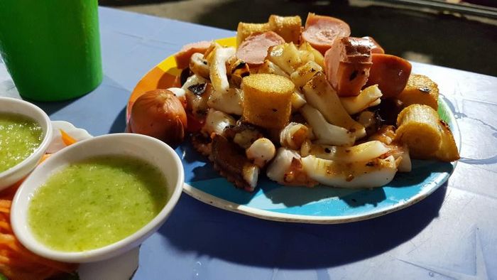 Grilled Octopus 20 Thước is likely a familiar name for many young people in Ho Chi Minh City. This popular snack shop offers a wide variety of dishes and drinks at affordable prices, making it a favorite hangout for students and locals alike. One of the standout dishes here is the grilled octopus, prepared in the authentic style of Da Nang. The octopus is tender and delicious, either grilled simply or marinated in a rich sauce, then cooked to perfection and served with fresh, crunchy vegetables for a truly irresistible flavor combination.