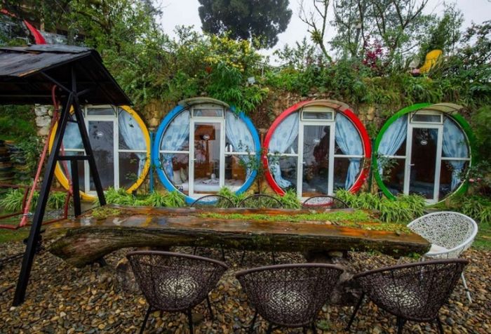 Perched on a hill in Sapa, Tubotel Sapa Retreat offers panoramic views of the town. Its strategic location and breathtaking views make it a popular choice, all at a reasonable price. The homestay's astonishing design and spacious layout create a comfortable ambiance for visitors. The first floor comprises 3 bedrooms, a living room, and a well-designed kitchen, suitable for close-knit groups of friends. The second floor features 2 bedrooms and a balcony with a stunning view of Sapa town. The vibrant and eye-catching exterior of the houses adds to the charm.