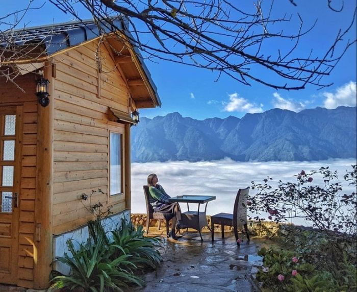 Sapa Jungle Homestay is designed in a fairytale style, with sturdy pine wood structures adorned in a rich brown tone. Inside the homestay, immerse yourself in an incredibly picturesque scene, with a variety of flowers saturating the surroundings. The space is meticulously decorated in a minimalistic style by the owner, creating a cozy atmosphere. Every small corner of the homestay serves as a special backdrop for Instagram-worthy photos.