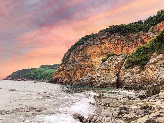 Mũi Nghê is known for its tranquil water lagoon, tinted with a hint of blue from the sea, surrounded by rocky formations. The area features rocky beaches and open land, perfect for camping with friends under the stars. As it's the first place in the city to greet the sunrise, you can experience an unforgettable view as the red sun rises slowly, casting golden rays on the sea, with soft white clouds floating on the horizon. Watching the sunrise here is a truly magical experience.
