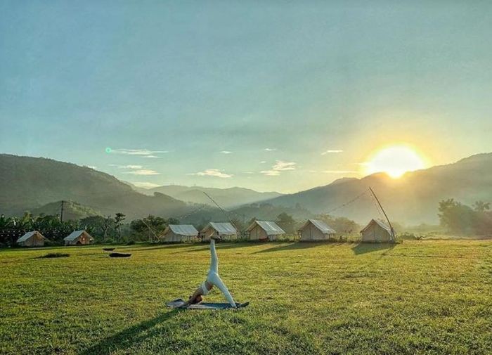 Yên Retreat is an eco-tourism campsite located along the river in Da Nang, 35 km from the city center, near the outskirts. Known as a perfect getaway to escape the hustle and bustle of everyday life, Yên Retreat offers a peaceful environment where you can relax and rejuvenate after stressful work or study days. As night falls, you can gather with friends around a campfire, enjoy a warm cup of tea, chat, sing, and stargaze. With the river on one side and mountains on the other, it's an ideal spot to reconnect with nature, breathe in the fresh air, and experience pure tranquility.