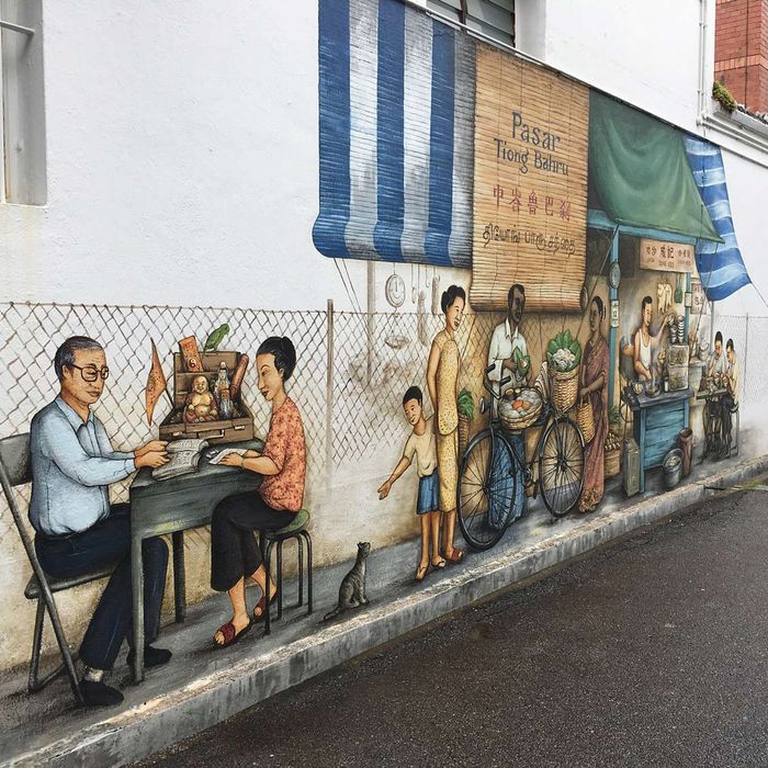 Tiong Bahru is a famous tourist spot in Singapore known for its stunning murals that depict history. These murals are painted directly on walls and building facades, each telling a story with descriptive captions. One impressive mural is the 'Bird Singing Corner,' where bird enthusiasts gather to enjoy melodies from their beloved pets.
